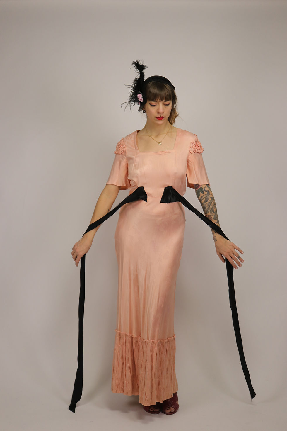 1930s Black Rayon Ensemble Skirt and Blouse - Size S